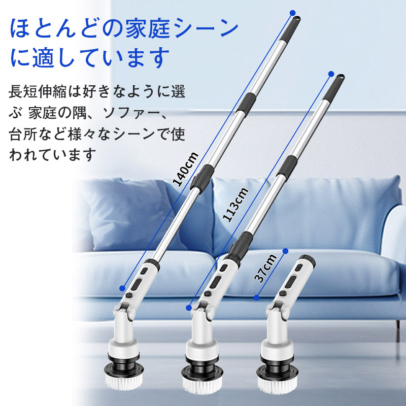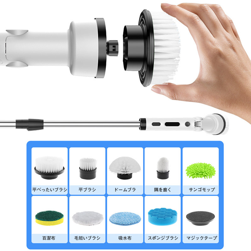 電動ブラシ 掃除用 USB充電式 車掃除 電動 9種類 付替えブラシ お風呂 バス 掃除ブラシ 長さ速度調整 ポリッシャーワイヤレス ハンディ 柄付