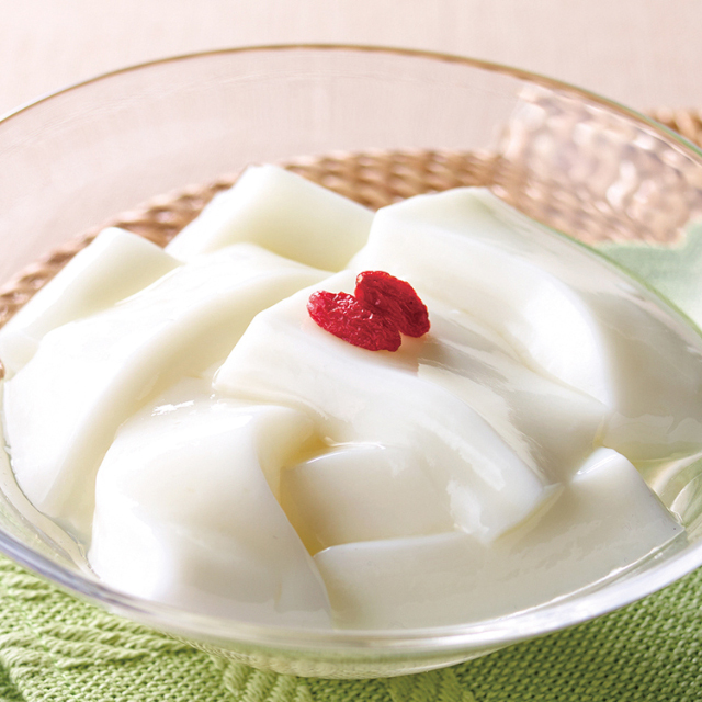 ソフトでつるんとした食感が特徴の杏仁豆腐。解凍 後、季節のフルーツなどとまぜあわせるだけで簡単にオリジナルメニューができあがります。カット済みです。