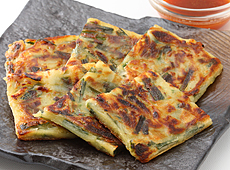 ◇ポイント:魚介がたっぷり入った本格的な韓国風お好み焼きです。外はカリッと中はもちもちとした、特徴のある食感が特徴です。お好み焼き1枚につき1つのタレ付き。