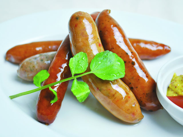 ハーブ・ブラックペッパー・カレー風味・ブロッツェン・チョリソーの5本入り。