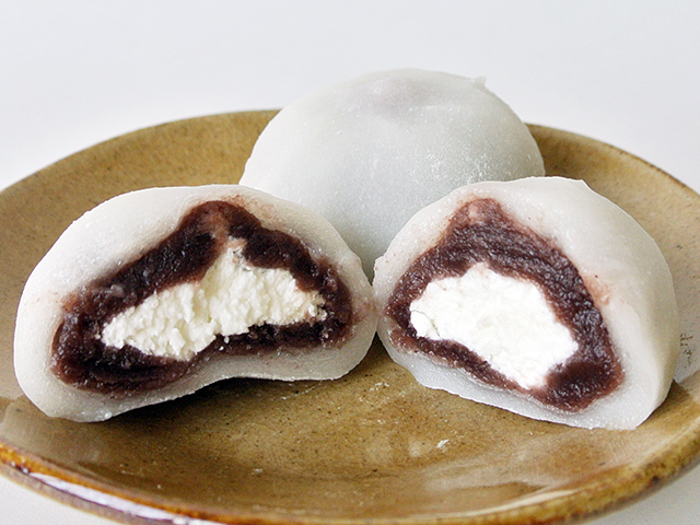 ◇ポイント:あんには北海道産小豆を使用。生地にこんにゃく粉を配合し、生地をふんわりと仕上げたクリーム大福です。