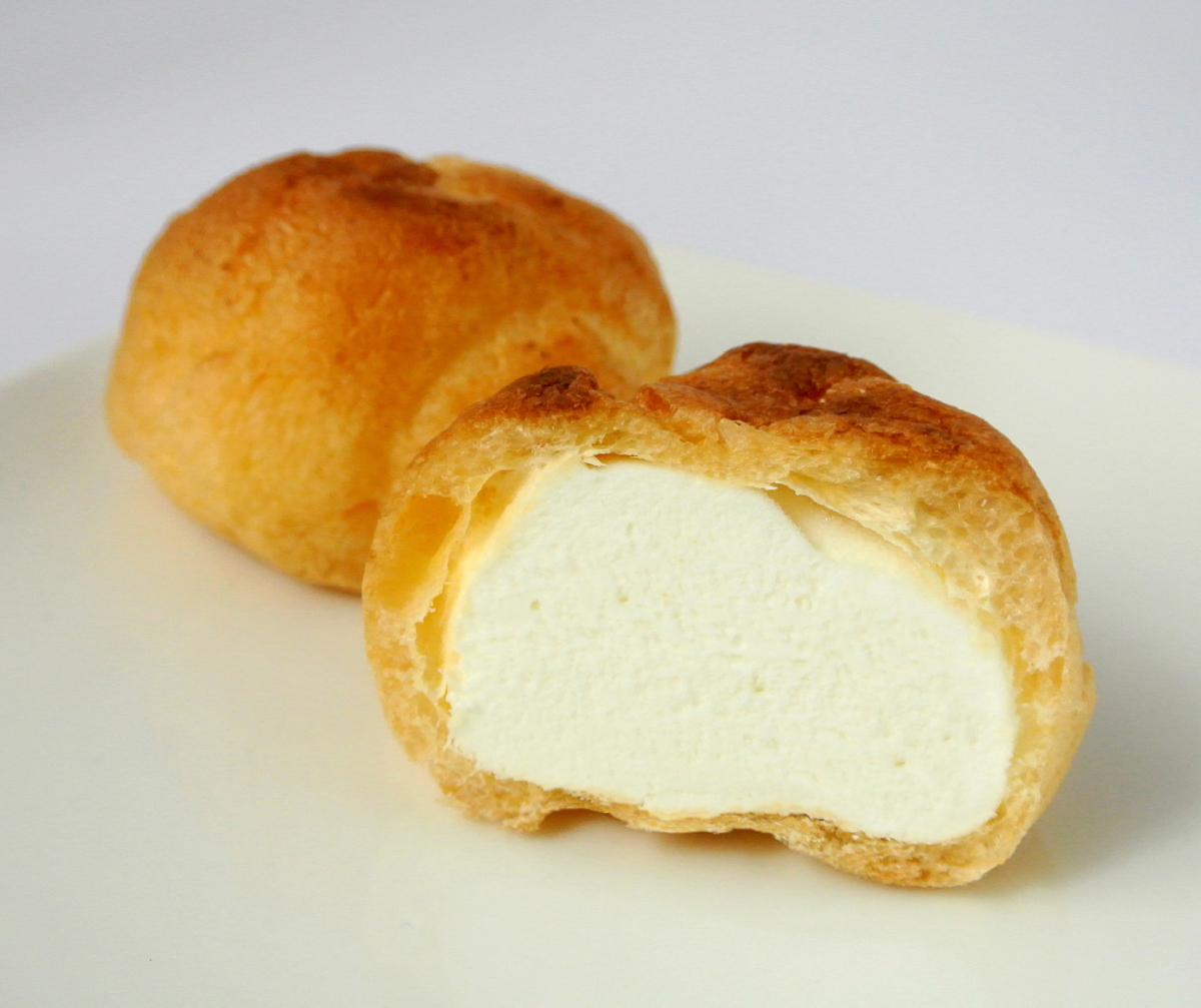 ◇主要原材料:シュー皮(全卵、ファットスプレッド、小麦粉、食塩)、乳製品、異性化液糖、ショートニング、砂糖、水あめ、デキストリン、食塩、乳化剤、香料、安定剤(増粘多糖類)、膨脹剤、着色料(カロチン)、(原材料の一部に大豆を含む)