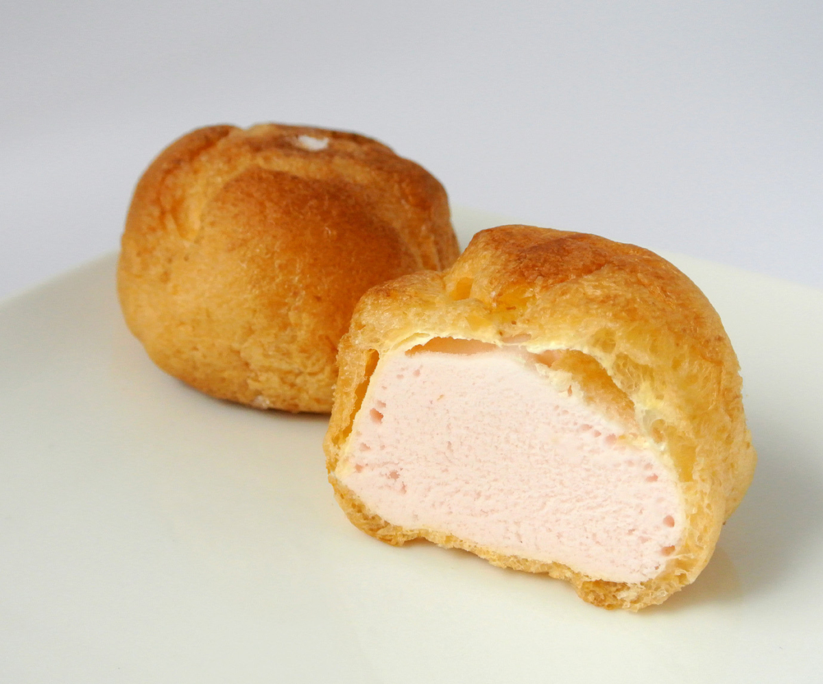 ◇主要原材料:シュー皮(全卵、ファットスプレッド、小麦粉、食塩)、水あめ、ショートニング、異性化液糖、砂糖、乳製品、濃縮ストロベリー果汁、デキストリン、食塩、乳化剤、香料、安定剤(増粘多糖類)、膨脹剤、着色料(紅麹、カロチン)、(原材料の一部に大豆を含む)