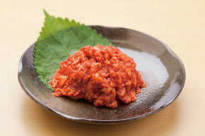 ◇ポイント:鱈(タラ)の内臓を塩漬けにし、自家製ヤンニョンを加えてキムチにしました。程よい辛さと、特融のコリコリした食感をお楽しみください。