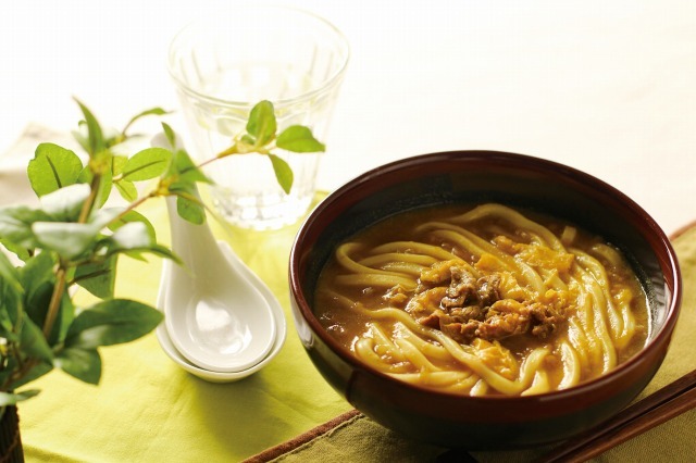 ◇ポイント:カレールーは、程よくスパイスの効いた和風だし仕立てで、コク・旨味が有ります。具材は、国産牛肉、玉ねぎ、刻み揚げです。麺はルーに絡み易いようやや細めの番手に仕上げています。
