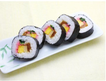 ◇主要原材料:寿司飯(清白米(国産)、合わせ酢(果糖ぶどう糖液糖、醸造酢、マルトースシラップ、食塩、その他)、植物油)、玉子焼き、味付干瓢、味付高野豆腐、おぼろ、野沢菜漬、焼海苔/加工澱粉、ソルビット、調味料(アミノ酸等)、酸味料、着色料(コチニール、カロチン)、(一部に卵・小麦・大豆を含む)