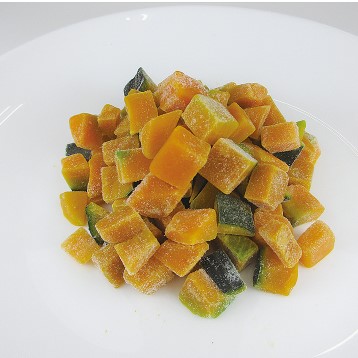 ◇ポイント:幅13mmにダイスカットしたかぼちゃをブランチング後急速バラ凍結しました。
