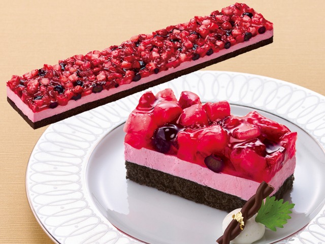 栃木県産とちおとめ苺果汁を使用し、いちごとブルーベリーの果肉を贅沢に敷きつめたフルーツケーキです。立体的で存在感のある果肉と鮮やかな彩りによりビュッフェボードをより華やかに演出いただけます。
