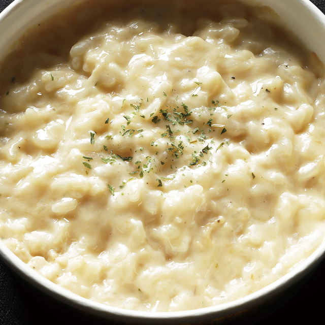 ポルチーニペーストと北海道産生クリームを使用したコク深いソースに3種のチーズをトッピングし、濃厚な味わいに。