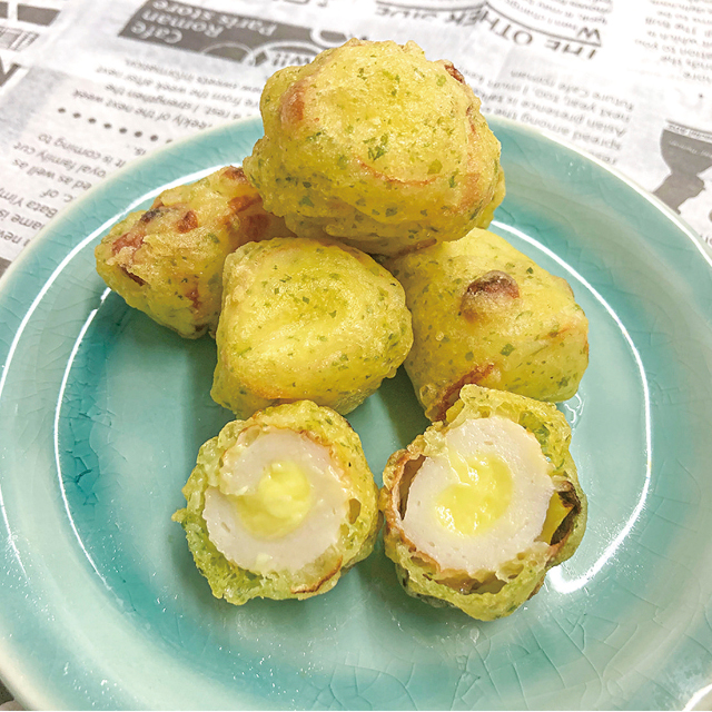 ◇主要原材料:魚肉(外国産又は国産(5%未満))、乳等を主要原料とする食品(植物油脂、ナチュラルチーズ、食塩、その他)、衣(小麦粉、粉末水あめ、青さ、卵黄粉、植物油脂、大豆粉)、ぶどう糖、砂糖、食塩、澱粉、大豆蛋白、豚脂、植物油/加工澱粉、ソルビトール、調味料(アミノ酸等)、炭酸Ca、pH調整剤、膨張剤、カゼインNa、乳化剤、酢酸Na、トレハロース、増粘多糖類、カロチノイド色素、香料、(一部に卵・乳成分・小麦・大豆・豚肉を含む)