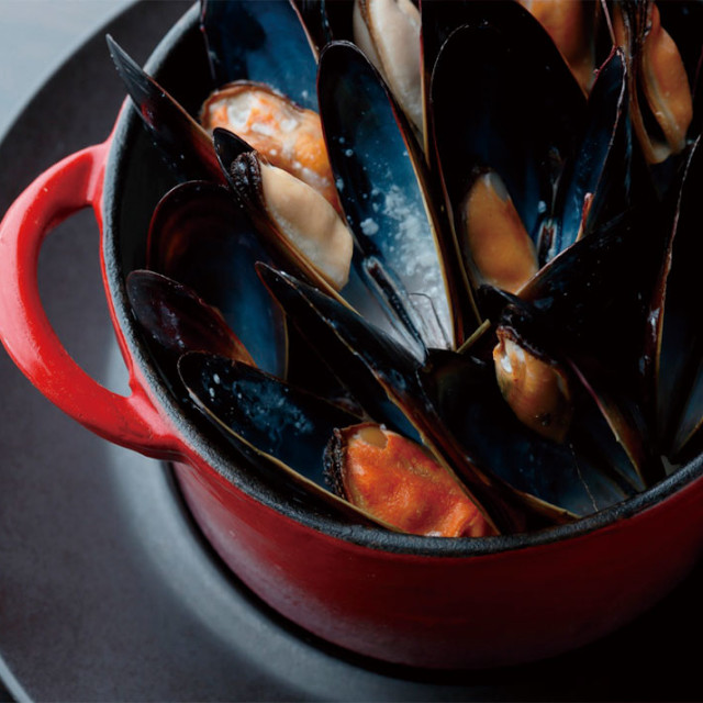 身入り、風味のいい時期に限定して水揚げしたムール貝をコクのあるバターガーリック味に仕立てました。