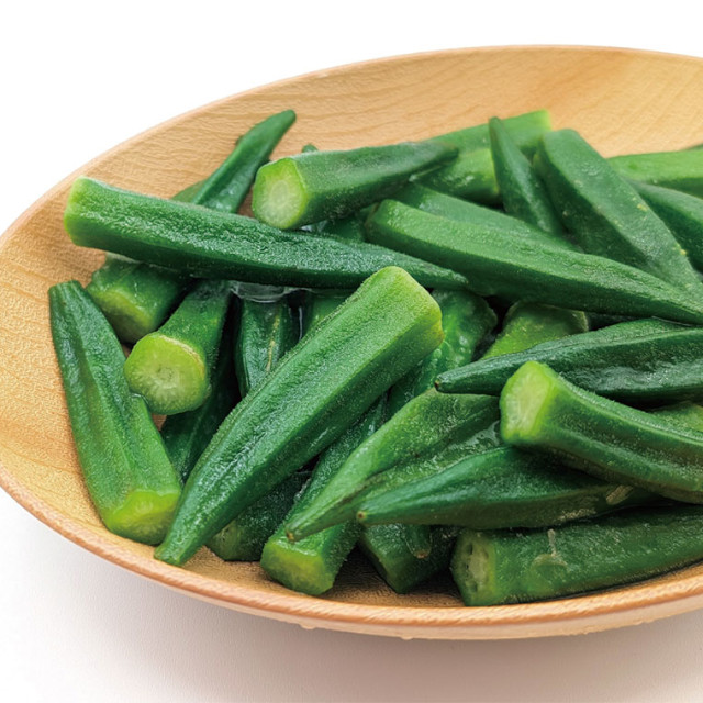 彩り良いオクラを長さ約6〜9cmにカットしました。自然解凍で簡単便利に調理できます。
