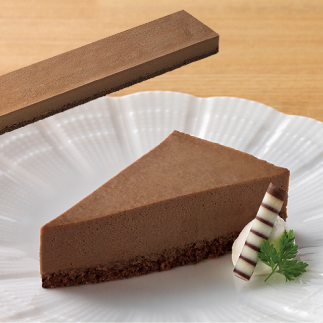 カカオマスとココアパウダーを使用し、カカオのコクと香りを生かした口溶けなめらかなチョコムースケーキです。