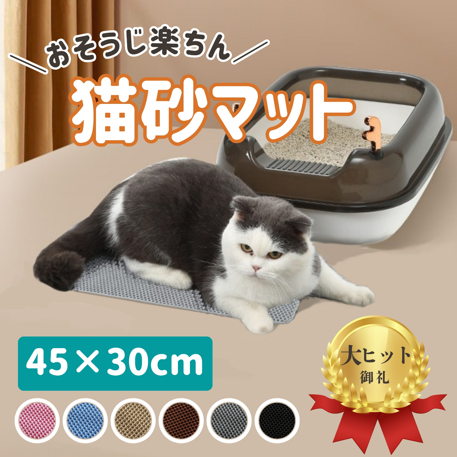 猫砂マット 猫トイレマット 砂取りマット 45×30cm 猫マット 飛び散り防止 水洗い 二重構造 EVA素材 ビッグサイズ 猫砂キャッチャー