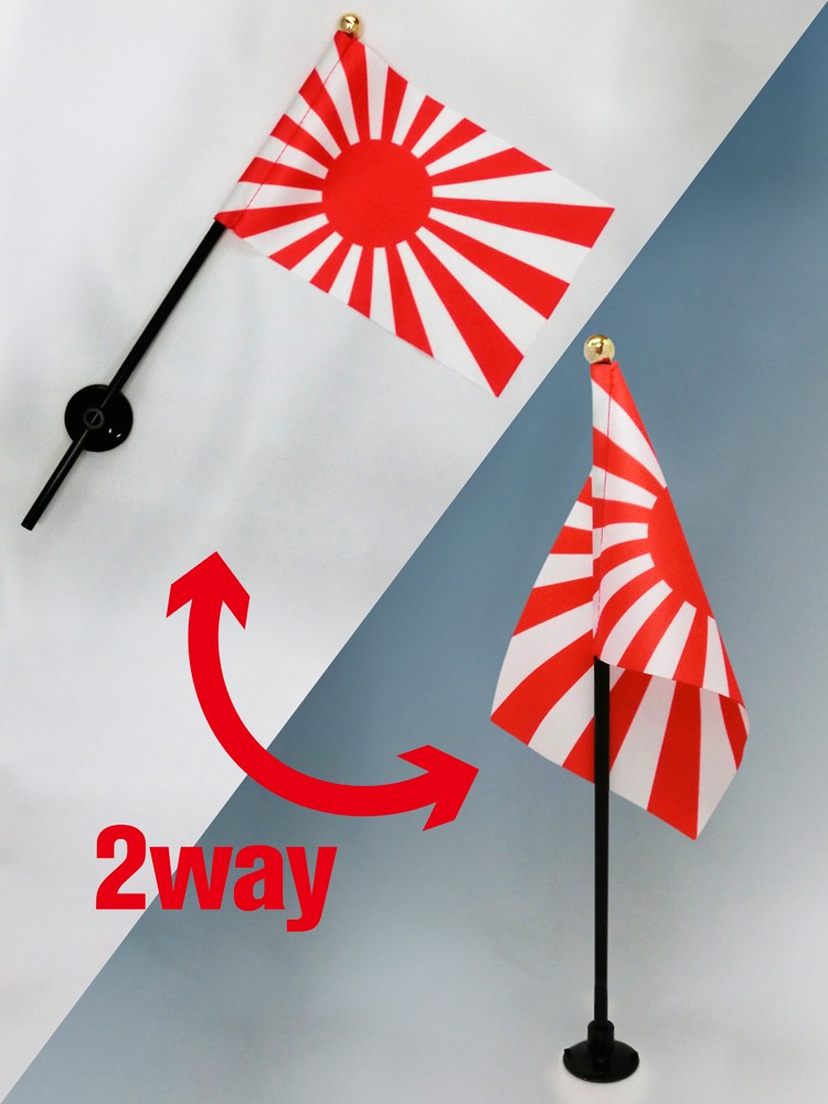 TOSPA 海軍旗 旭日旗 ミニフラッグ 旗サイズ10.5×15.7cm テトロンスエード製 ポール27cm 吸盤 のセット 日本製 世界の国旗シリーズ