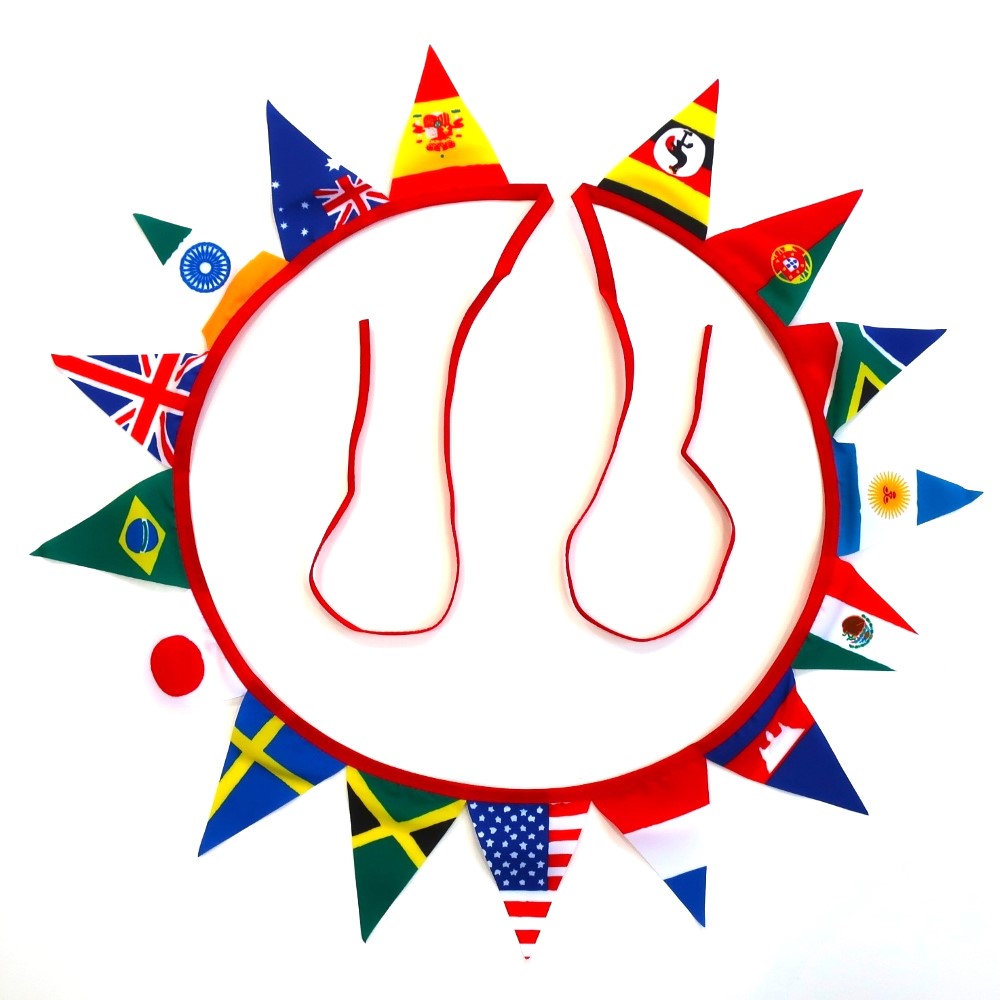 国旗の組み合わせ(16カ国):スペイン、オーストラリア、インド、イギリス、ブラジル、日本、スウェーデン、ジャマイカ、アメリカ、オランダ、カンボジア、メキシコ、アルゼンチン、南アフリカ、ポルトガル、ウガンダ