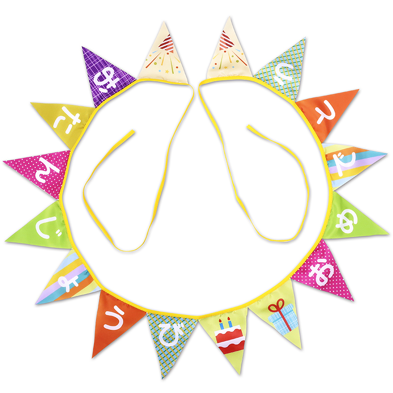 飾るだけで気分が盛り上がるお誕生日会用キッズ向けフラッグガーランドです。