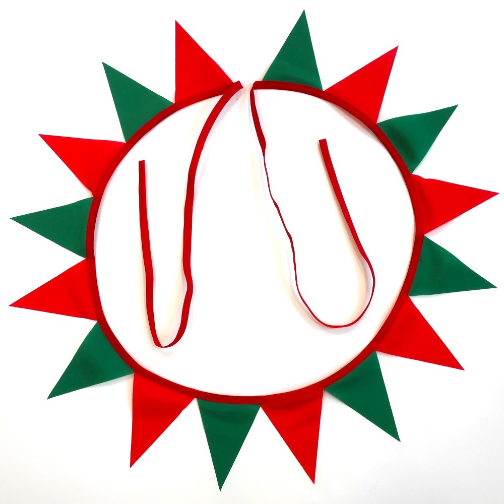 フラッグガーランドとは紐に連続する旗をあしらった装飾のことで、逆三角形の旗を連続したものが多いとされています。