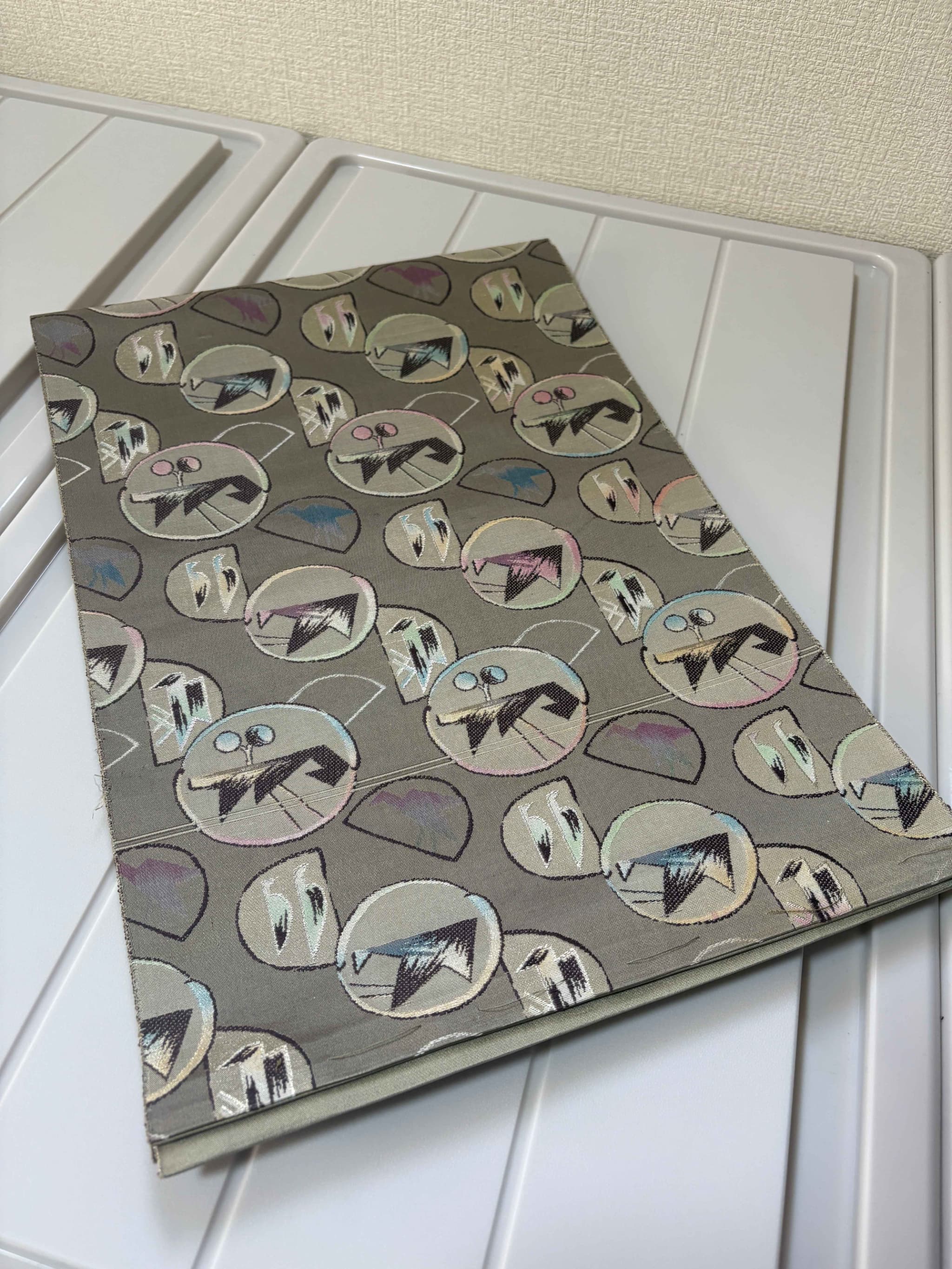 名古屋帯 グレー系 灰色 草花文 幅約30cm 着物帯 正絹 TCS着物 W34