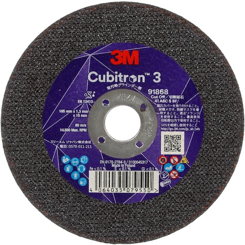 3M(スリーエム) キュービトロン3 切断砥石 4COW91868 105mm 1枚 3M史上最高の製品寿命