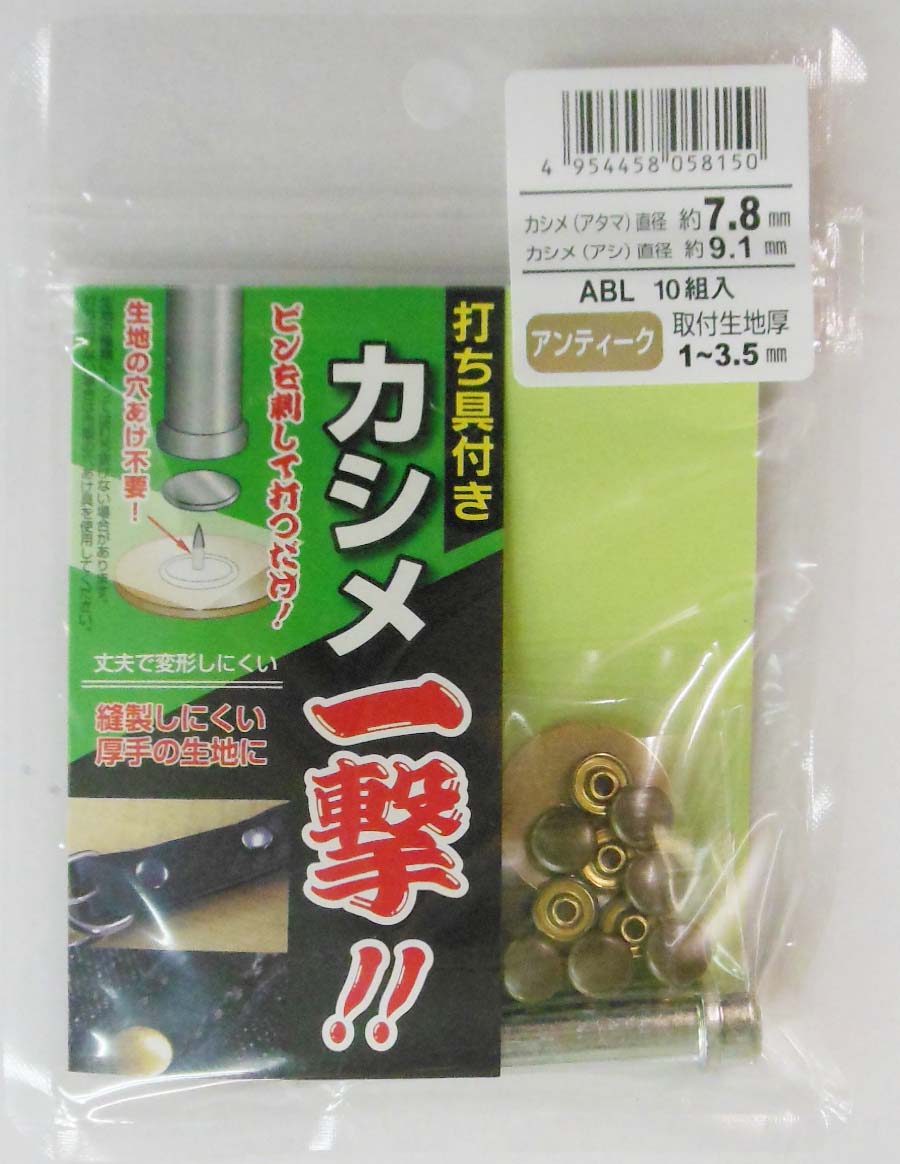 カシメ一撃!! 中 アンティーク10組入 KMABL ピンを刺して打つだけ 丈夫で変形しにくい