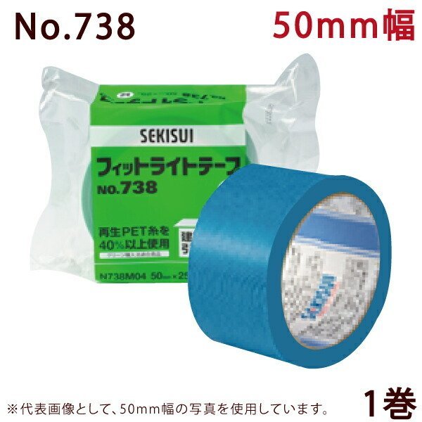 養生テープ セキスイ フィットライトテープ No.738 (青) 50mm×25m 1巻|仮止め 手で切れる 塗装 DIY 防災 引っ越し