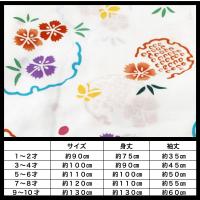 本染 注染 こども浴衣 雪輪なでしこ 白地 日本製 女児100センチ 3・4歳用