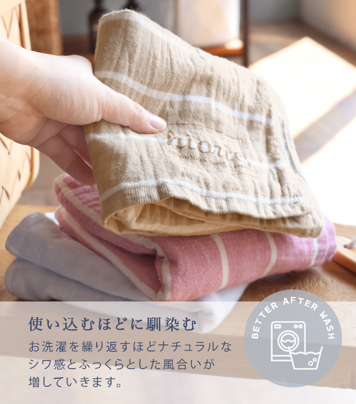 フェイスタオル ガーゼタオル <同色4枚セット> ボーダー 日本製 まとめ買い