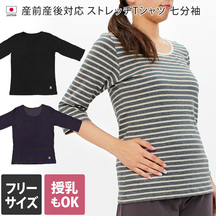 爆買 日本製/ストレッチ/ボーダー/Tシャツ/半袖/7分袖/大人/マタニティ/授乳/レディース/