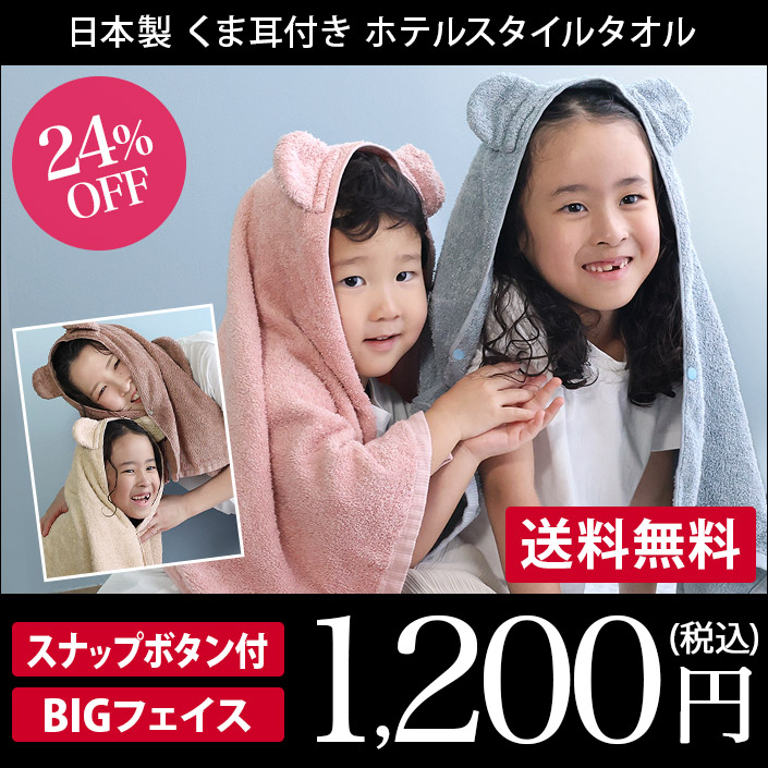 くま耳付き ホテルスタイルタオル ビッグフェイスタオル 日本製 送料無料