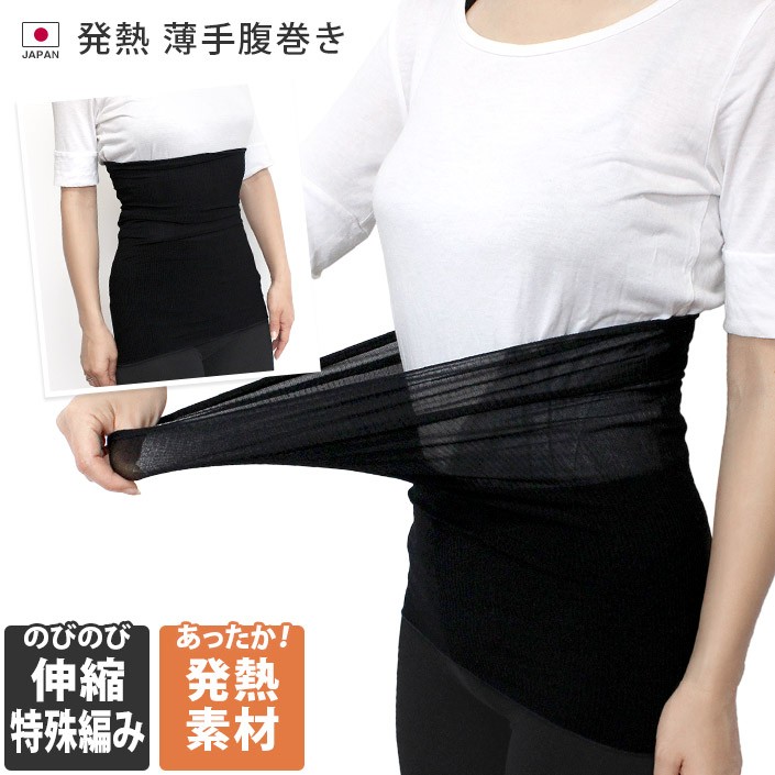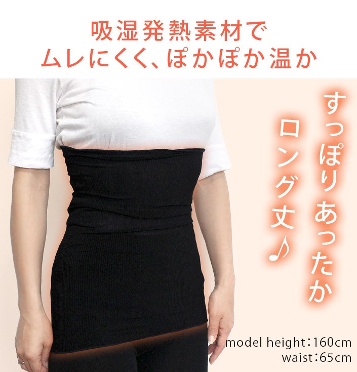 胸下から腰まで、お腹周りをすっぽり覆うロング丈の腹巻きです。