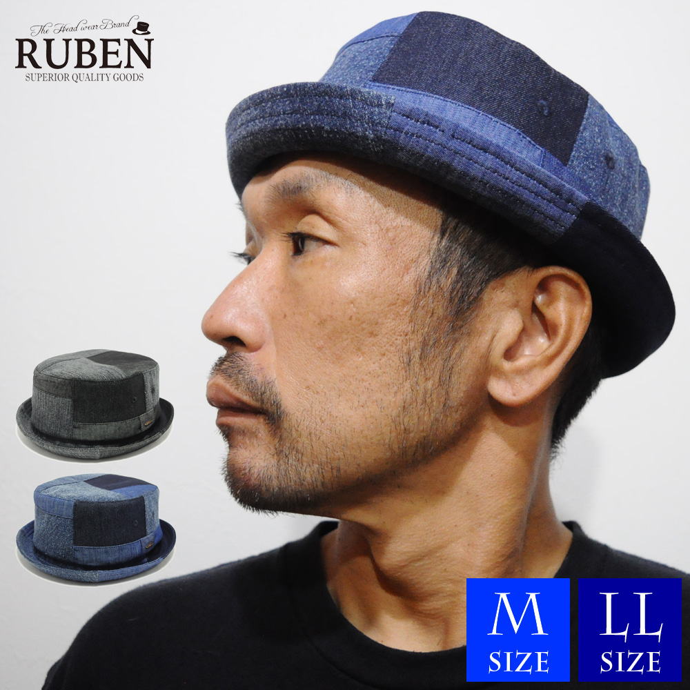 ■ 特徴 帽子、ハット、ポークパイハット、大きいサイズ、ビッグサイズ、XLサイズ、オールシーズン、パッチワーク、オシャレ、お洒落、メンズ、男性、男性用、レディース、女性、女性用、ブランド、ゴルフ、ルーベン、Ruben、デニム、コットン