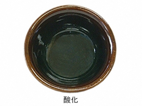 ●光沢のある黒色に近い濃緑色の織部釉です。
