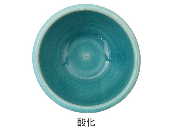 ●透明感の非常に強いカラフルな色合いの釉です。施釉厚の調整が重要です。