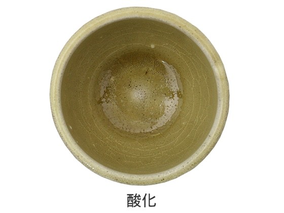 ●透明感の非常に強いカラフルな色合いの釉です。施釉厚の調整が重要です。