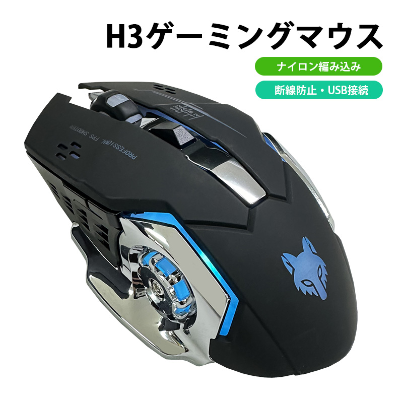 | ゲーミングマウス windows [H3] USB接続 バックライ ト 光学式 静音 4段調節 6ボタン搭載 LEDライト 高速クリック |