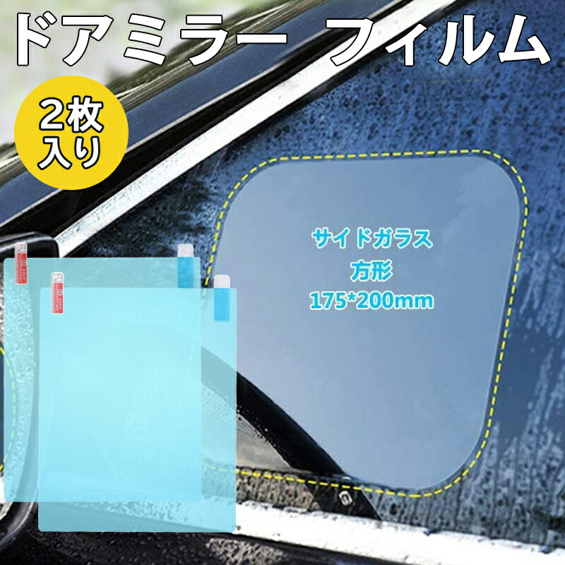親水ドアミラーフィルム 2枚入り ナノコーティング 撥水 自動車 車 高光透過率 ドアウィンドウ 窓ガラス フェンダーミラー サイドミラー フリーカット 200×175mm |
