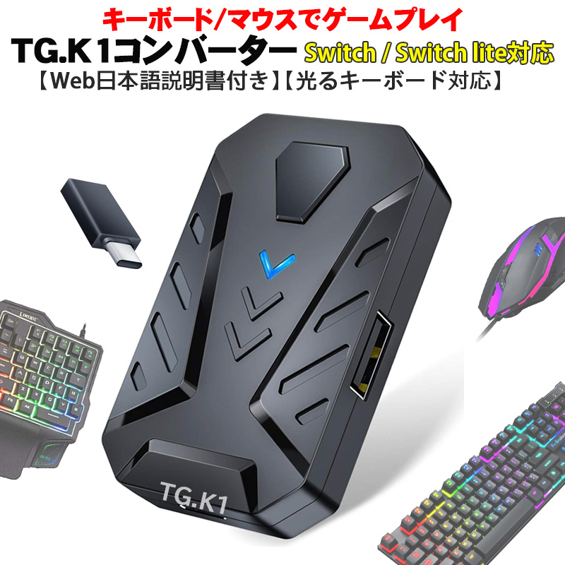 | Nintendo Switch Switch Lite対応 コンバーター Web日本語説明書付き [TG.K1] 任天堂スイッチ スイッチライト対応 簡単設定 遅延なし キーボード点灯保証付き |