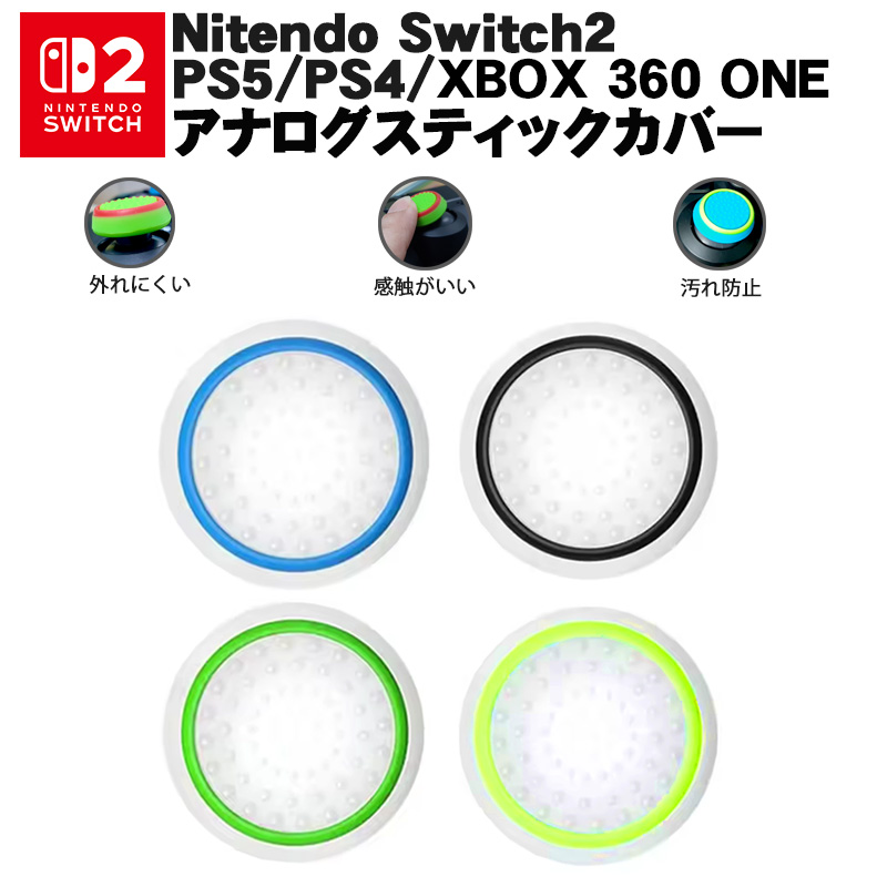 | Switch2 PS5 PS4 XBOX ONE 360対応 光るスティックカバー コントローラ専用 Switch Proコントローラー サークル ブラック グリーン ブルー 各1個 4個セット |