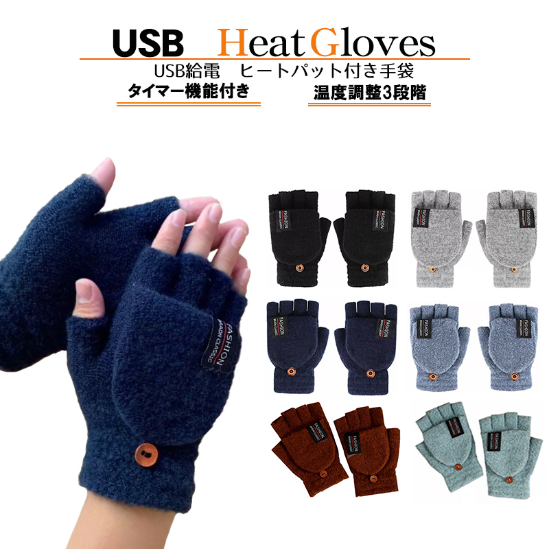 【USB給電 ヒート手袋 温度調整3段階 タイマー機能付き】