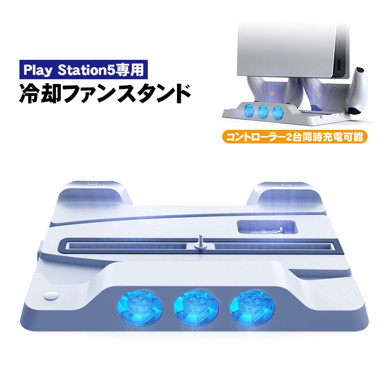 | PlayStation5用 冷却ファン付き多機能スタンド 通常版 デジタルエディション両対応 コントローラー2台充電可能 3段階風量切替え可能 LEDライト 冷却スタンド クーリングファン 縦置き 排熱 放熱 DOBE [TP5-1507] |