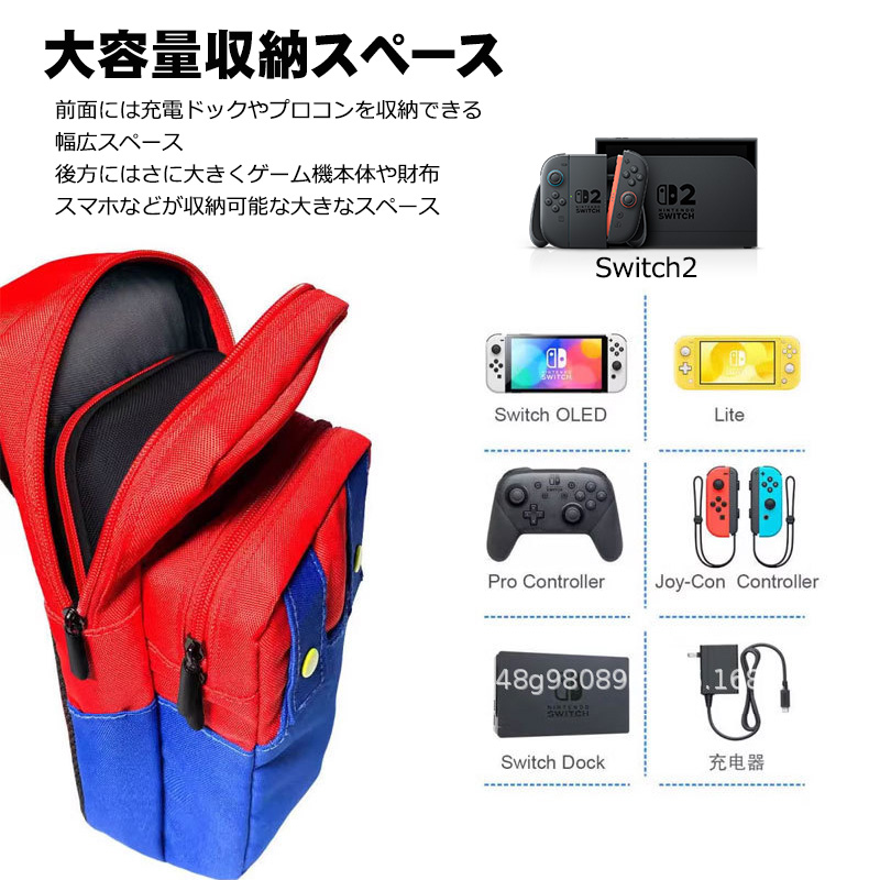 | Switch Switch2 収納可能 ショルダーボディバッグ 斜めかけ キャラクターバック ワンショルダー 子供 小学生 大人 |