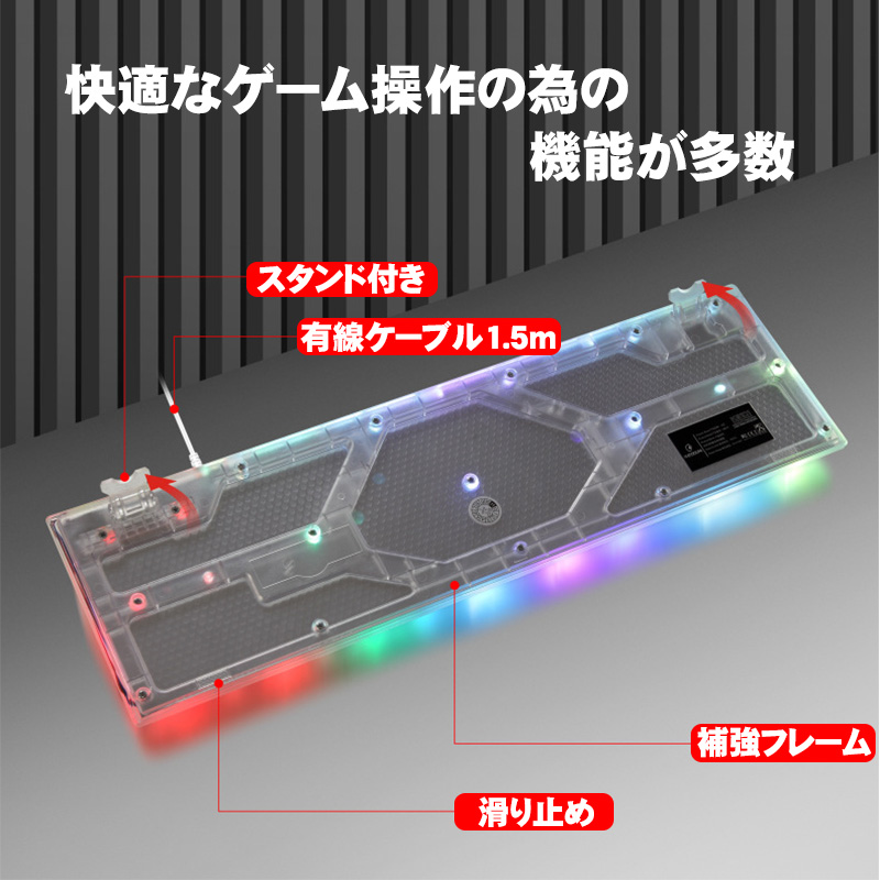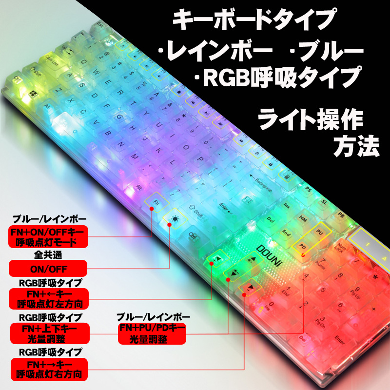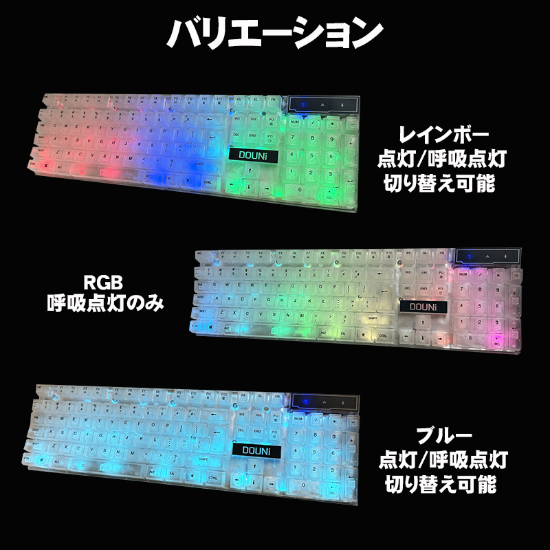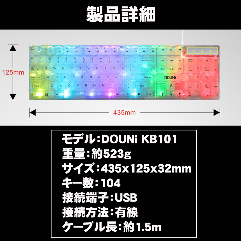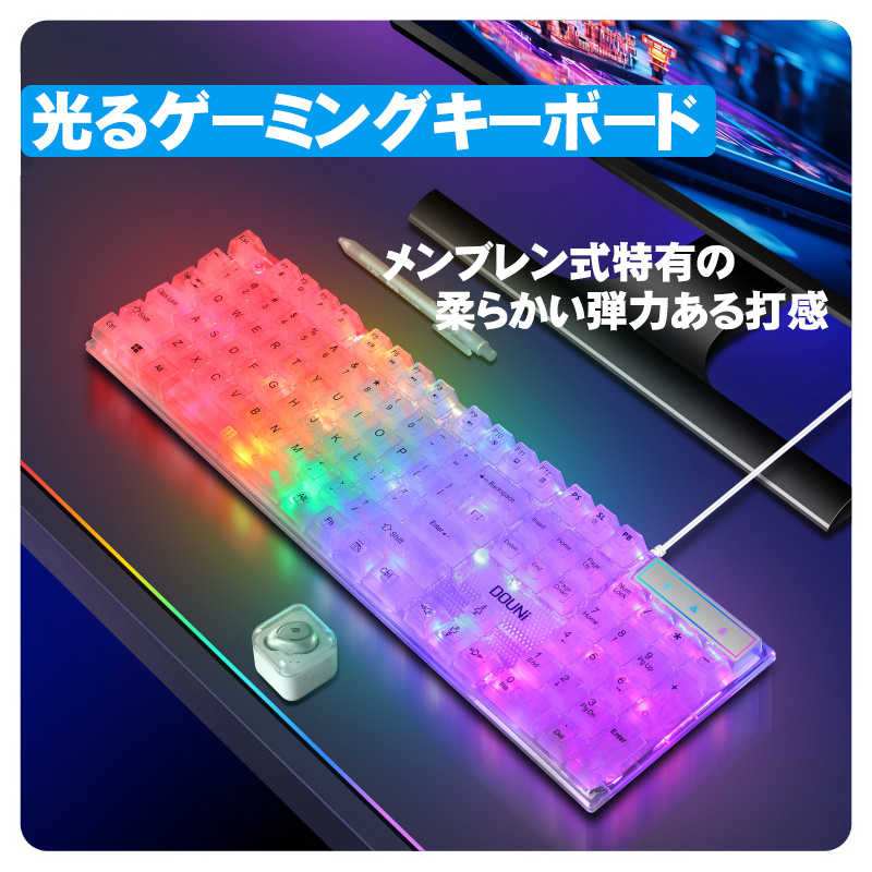 | DOUNi メンブレン式ゲーミングキーボード【KB101】 クリア 有線 使いやすい 打ちやすい 104キー バックライト ゲーム 光る キーボード 【送料無料】 |