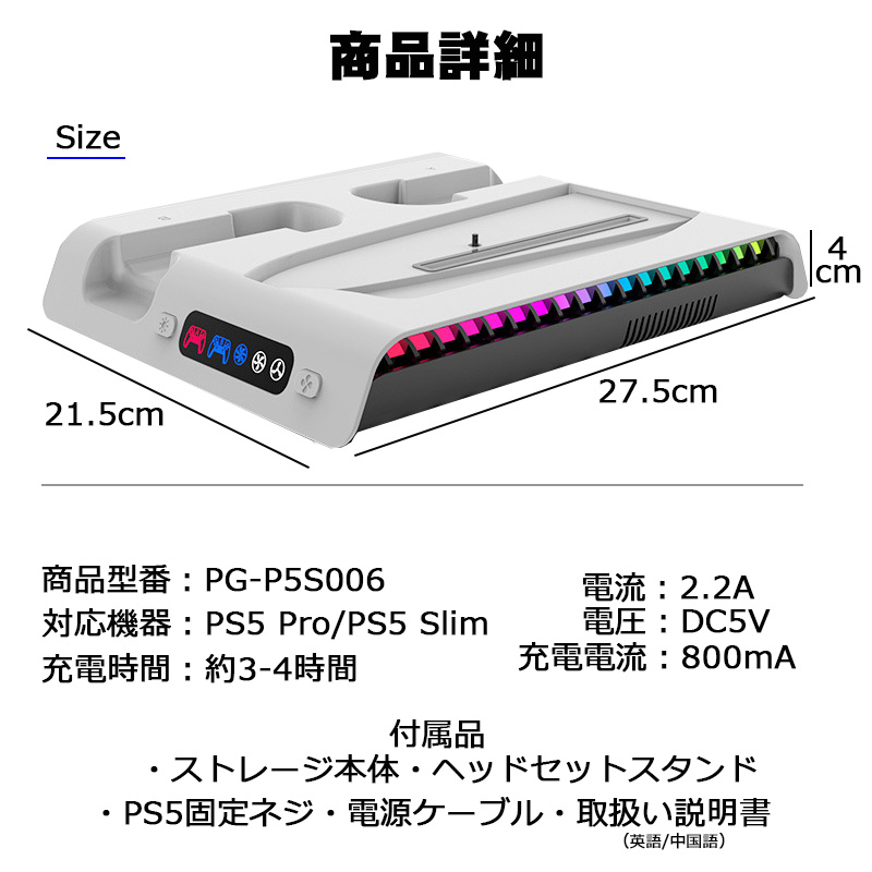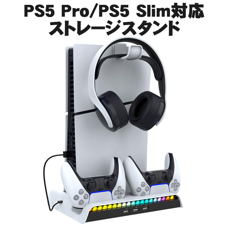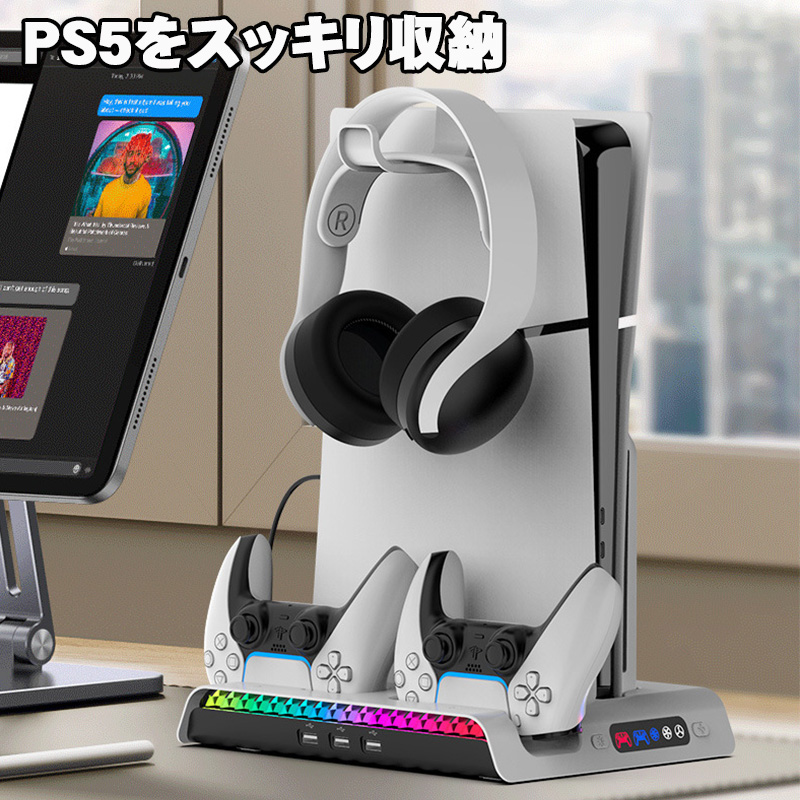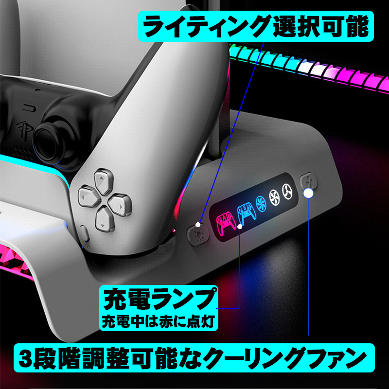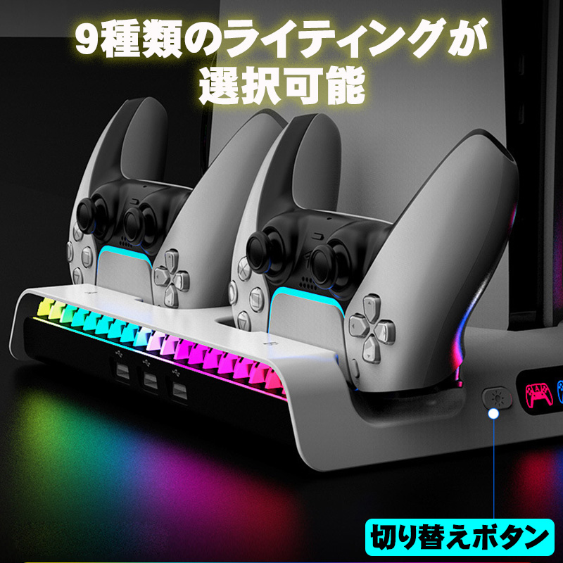 | PS5 Pro Slim ストレージスタンド 【ipega PG-P5S006】 充電スタンド 縦置き コントローラー 充電スタンド 冷却ファン 2台同時充電 クーリングファン RGBライト 多機能 収納 静音 USBポート プレイステーション5 |