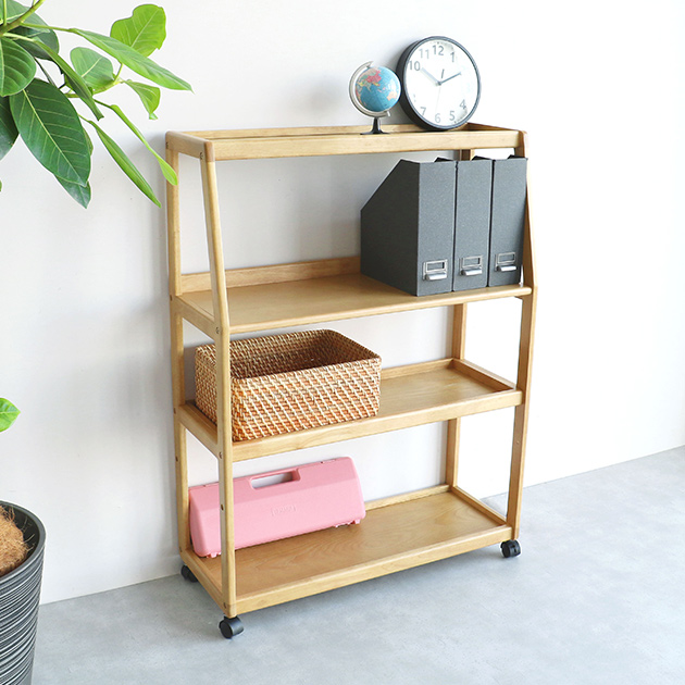 サイドラック キャスター付き 収納棚 学習デスク 学習机 天然木製 ナチュラル シンプル リビング学習 子供部屋