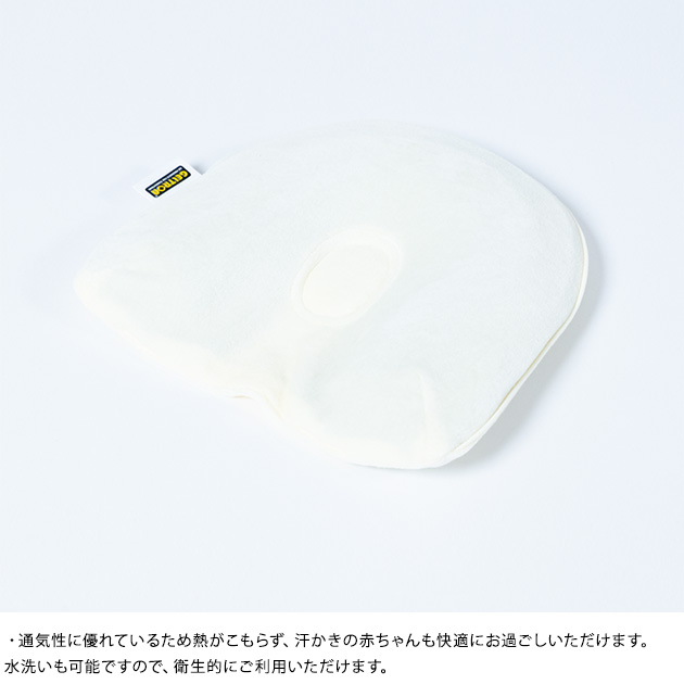 ・U字型にジェルトロンを配置した独自のドーナツ形状のベビーまくら。生まれたての赤ちゃんの不安定な頭部・首を安定させ優しく支えます。