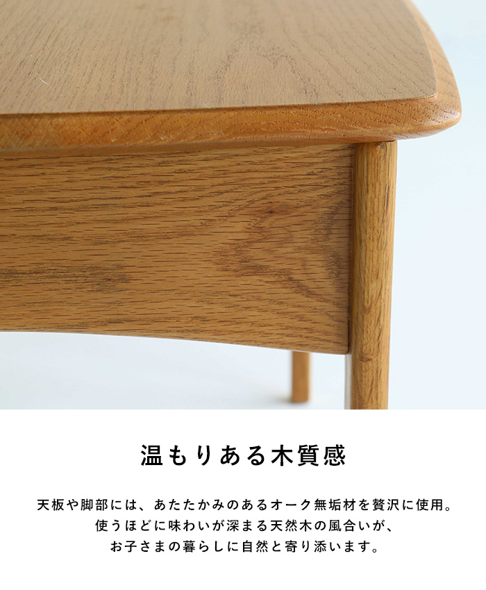 使うほどに味わいが深まる天然木の風合いが、お子さまの暮らしに自然と寄り添います。