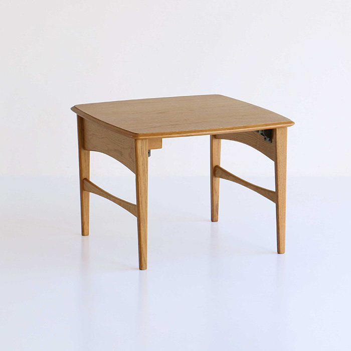 テーブル脚はワンタッチで折りたためる金具付き。