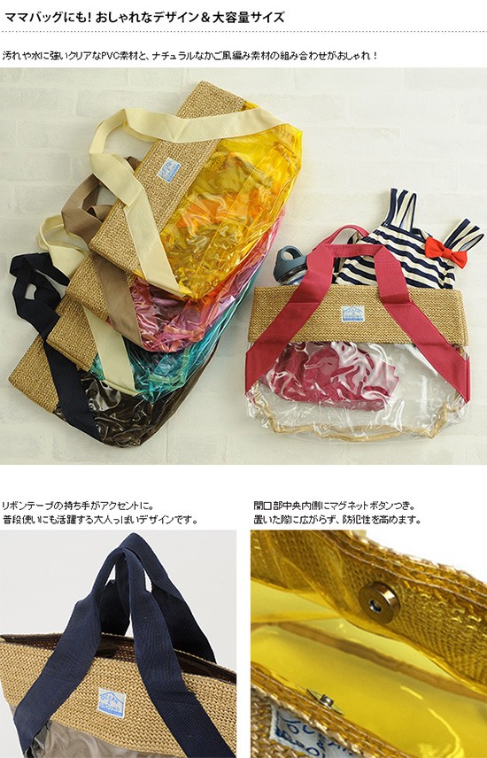 子供と大人の水着やタオルがまとめて入る大きめサイズで、海やプールはもちろん、夏のお出かけバッグとしても活躍します。