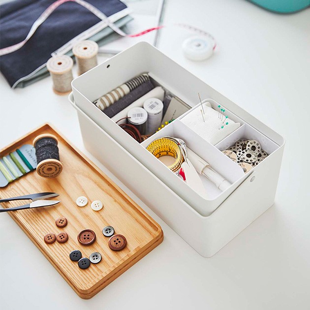 ・上下2段で使うことができ、上部の収納トレーは取り出すことができます。フタも裏返せばトレーとしてお使いいただけるので、小物が散らからず作業が進みます。